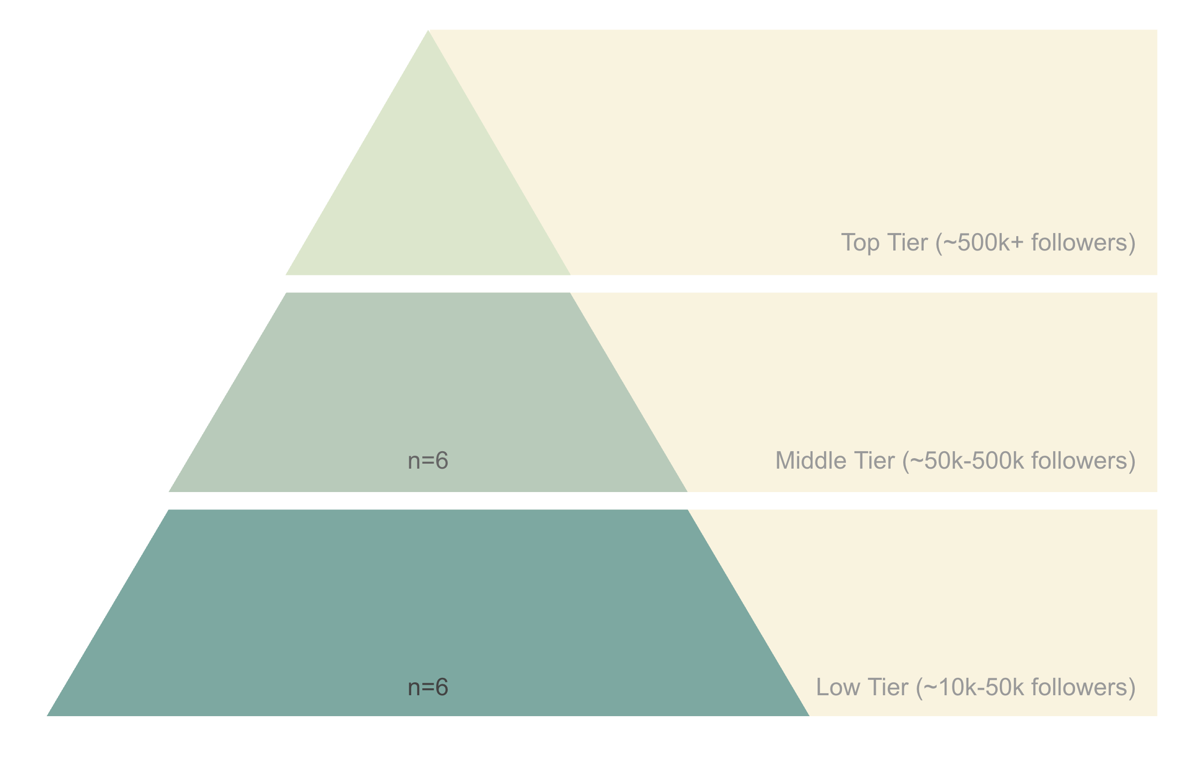 Total Sample Size Break Down (Top Tier: ~500k+ followers; Middle Tier: ~50k-500k followers; Low Tier: ~10-50k followers)